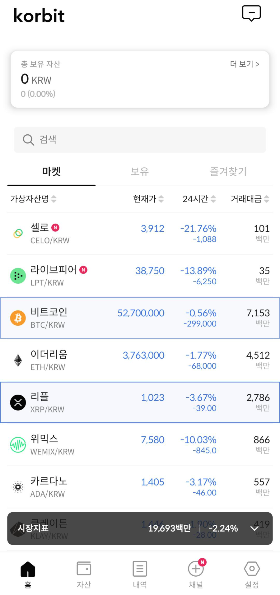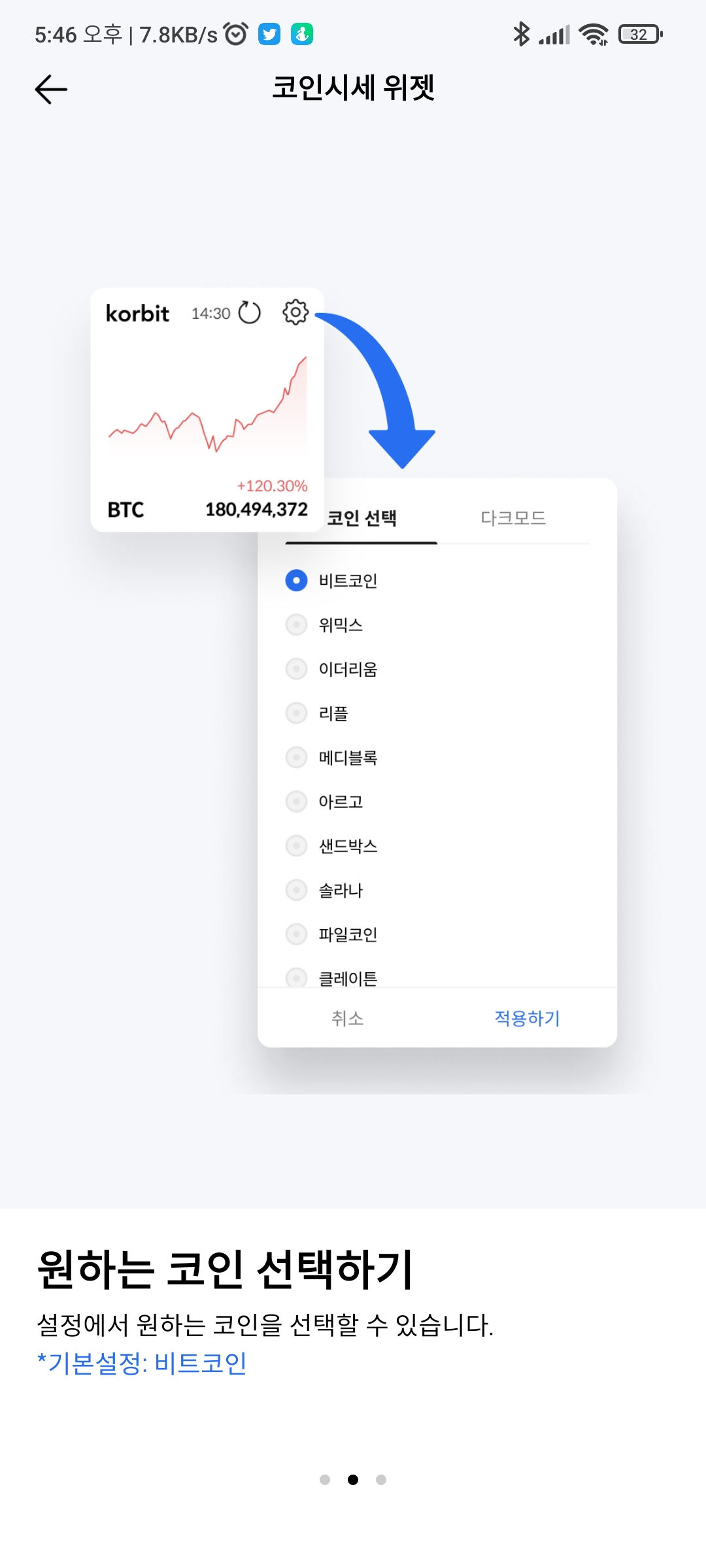 - 가상화폐 차트(즐겨찾기, 시세, 보유코인) 위젯 및 가이드라인 페이지 제작