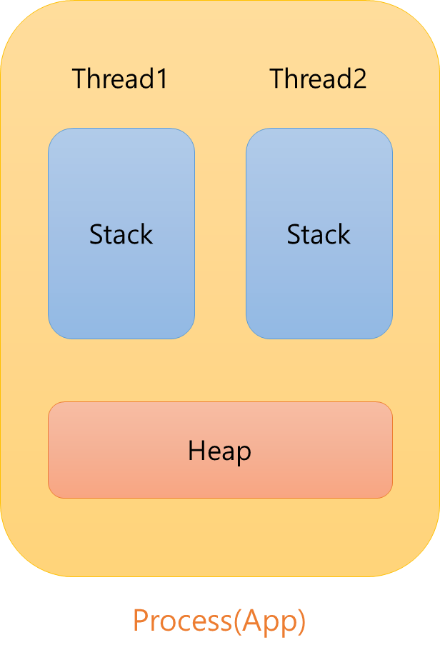 그리고 프로세스에는 1개 이상의 Thread(스레드)가 Stack 메모리를 할당받아 프로세스 내에서 여러 작업을 동시에 할 수 있게한다.