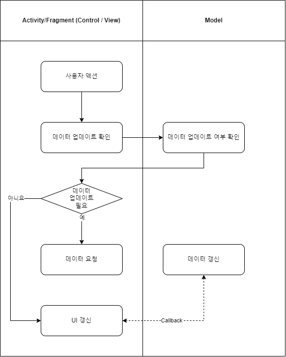 시간이 걸리는 API 통신, Background 작업이나, I/O 작업 등으로 인해 Intent의 전달만으로 Model을 호출하여 View에 보여주는 단순한 구조가 성립하기 힘들 수 있습니다.