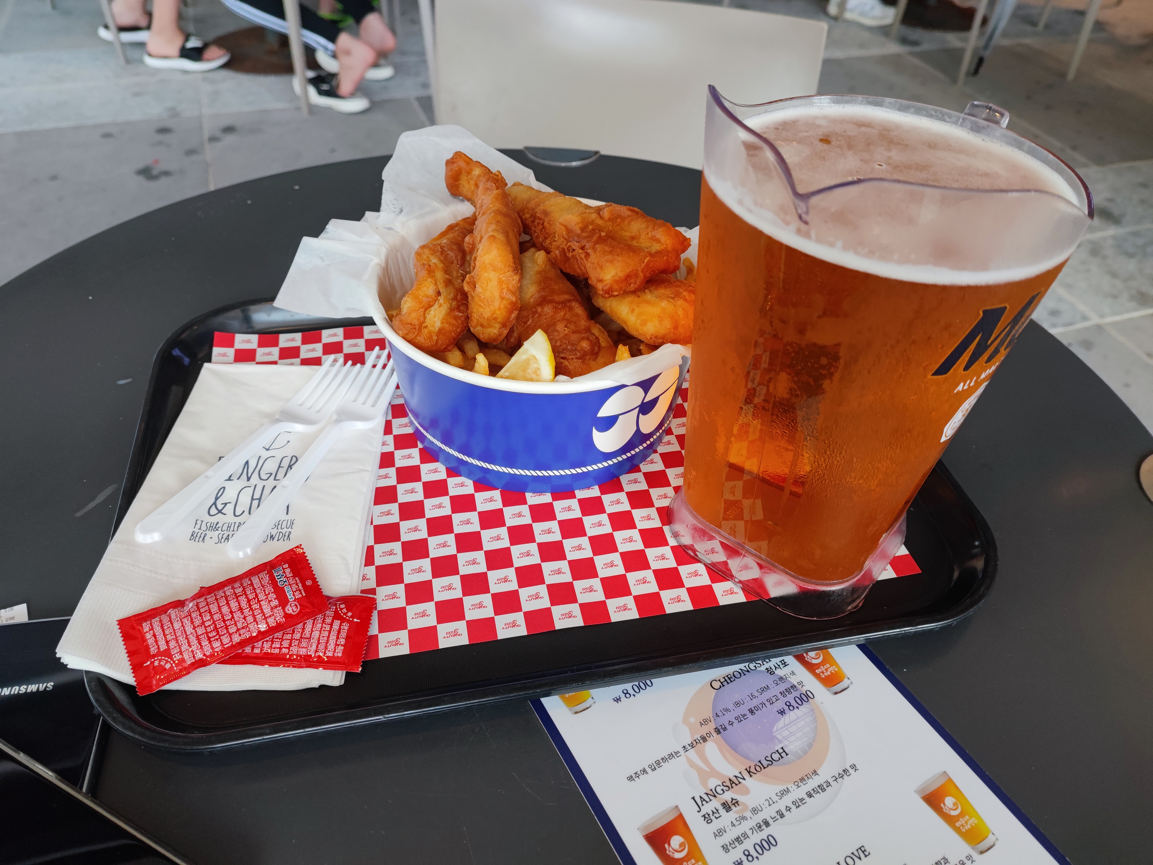 날씨가 우중충하고 습해서 아쉽긴 했지만 지인과 해운대에서 피쉬앤 칩스와 맥주를 마시니 기분은 좋더군요