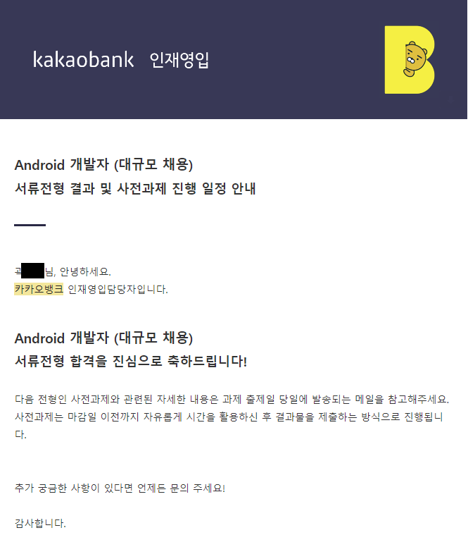이번 글은 카카오뱅크 면접을 진행한 기간 동안의 행적을 짧게나마 기록하고자 작성하였습니다.