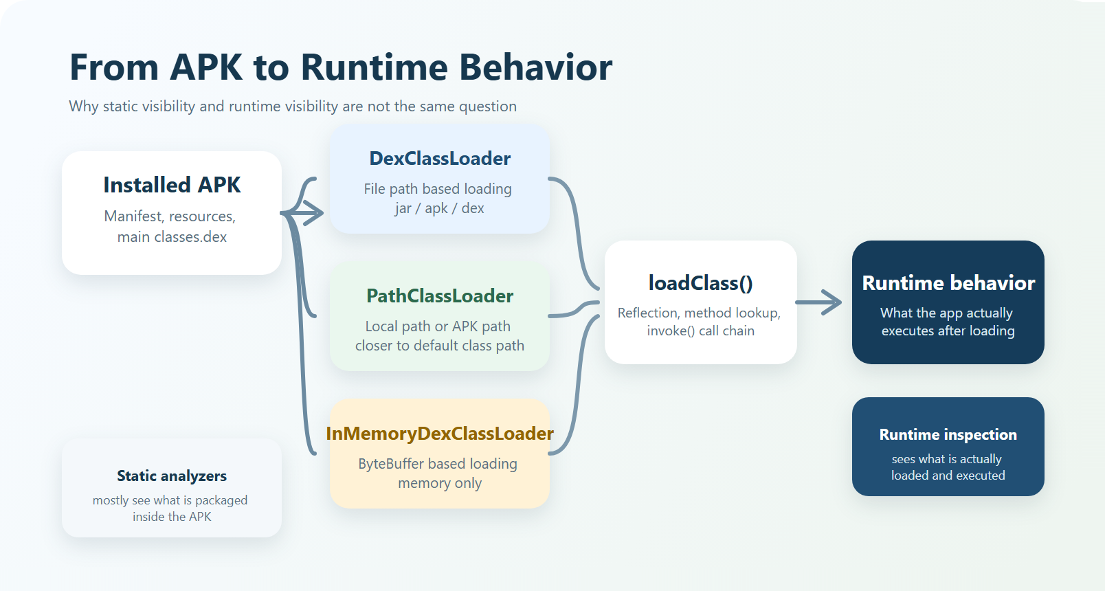 안드로이드 앱에서 "무엇이 설치되었는가"만큼이나 "런타임에 무엇이 실제로 로드되는가"도 중요하다는 점입니다.